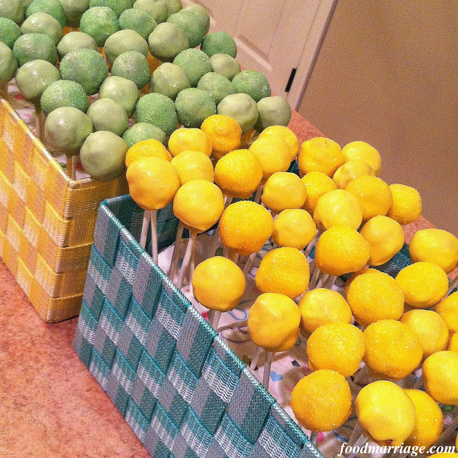 My friends Allison, Nicole and I made some delicious cake pops this weekend for our friend Joelle’s baby shower! And then I came up with the super cute saying and made a sign to go with the cake pops! We went with gender neutral colors because we don’t know what the baby will be yet. The yellow cake pops were made from a funfetti cake with funfetti icing. The green cake pops were made with brownies and a chocolate fudge frosting. Delicious!!