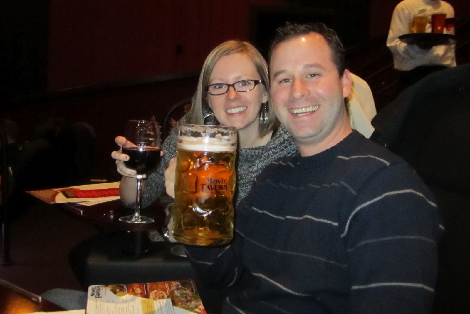 | My husband and me at the Movie Tavern… Check out that BEER! |