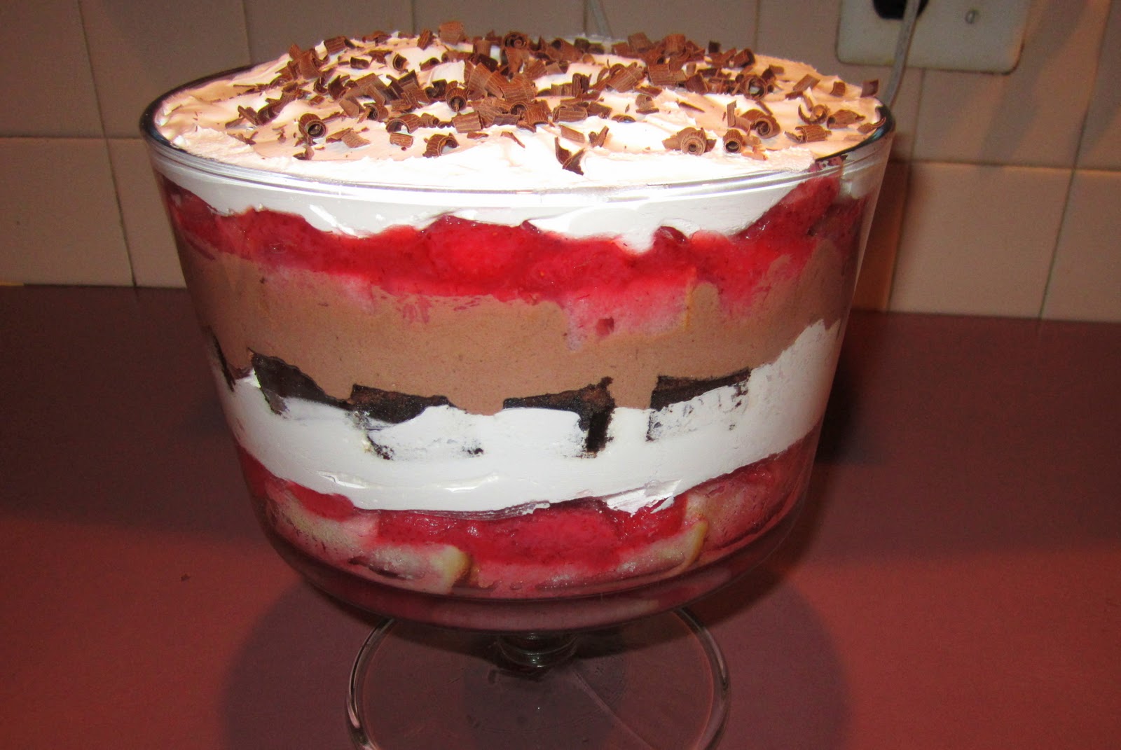 - Follow the ingredients on the chocolate mousse mix. You will want to do this in advance as it will need to set in the refrigerator for about two hours before using it in the trifle.