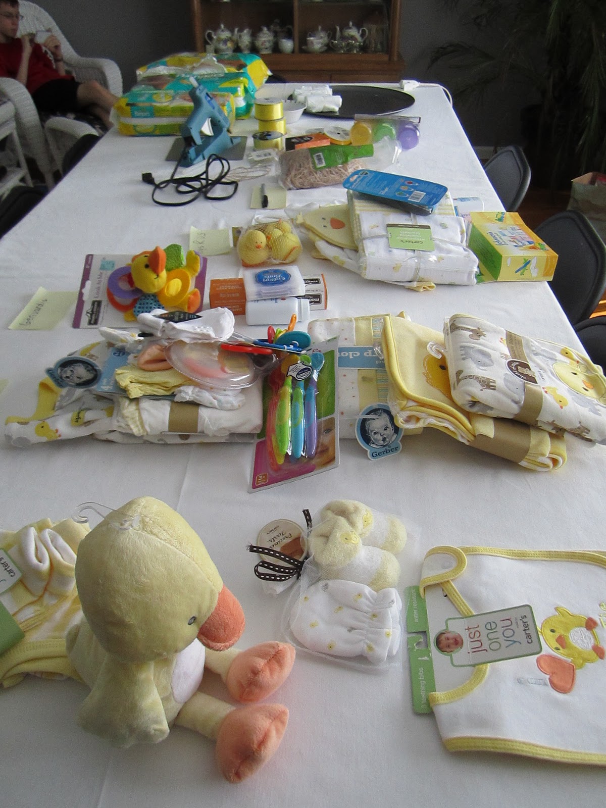 Your duck cake is just adorable. I like how you used items that had a lighter color to go with the diaper cake.