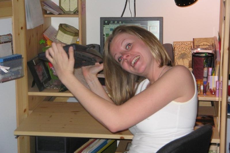 | My husband (before he was my husband) Striking a hilarious pose by the computer desk! |