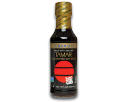 I learned that Tamari is actually a Gluten Free soy sauce!! According to The Vegetarian Cook’s Bible by Pat Crocker, “Similar to soy sauce, tamari is brown in color and slightly thicker. Unlike regular soy sauce, which is made by fermenting soybeans with roasted wheat or barley and salt, tamari is fermented naturally. Tamari contains only soybeans, water and sodium and is wheat and gluten-free.” Who knew!?